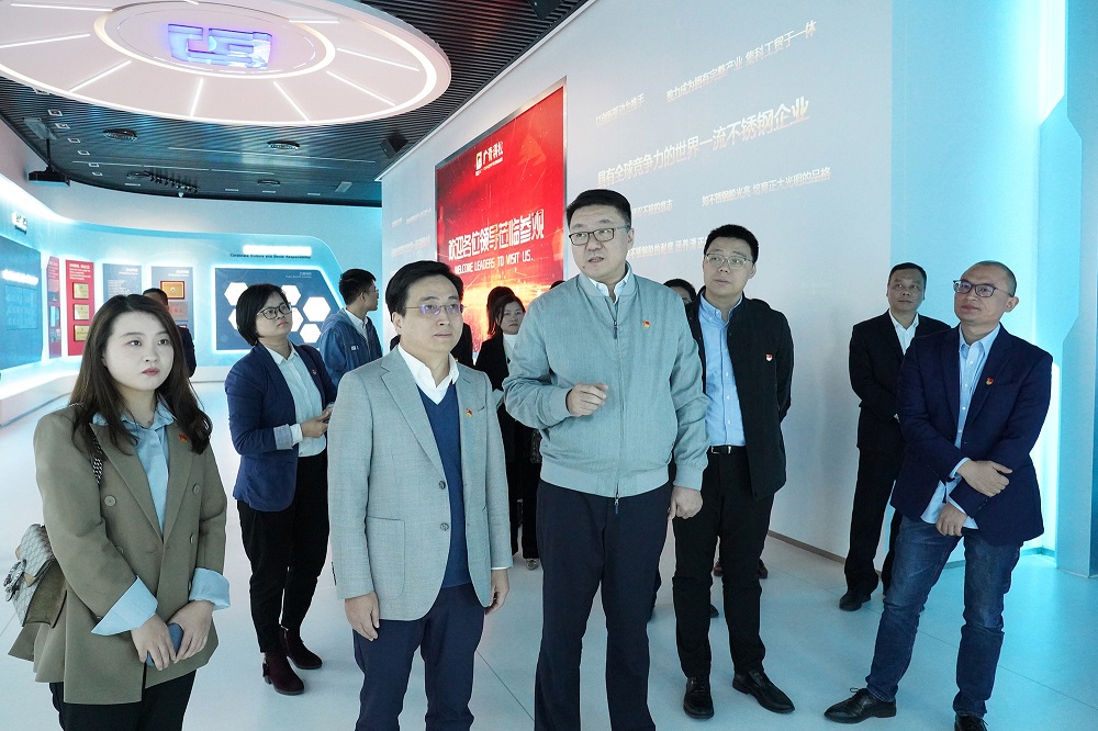 全体参会人员在党旗下重温入党誓词。仪式结束后,一行人员还参观了广青科技多功能展厅以及广青压延热轧车间生产线。