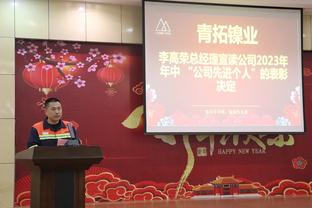 岁序常易,华章日新。为总结经验、激励先进、鼓舞士气,7月12日,福建青拓镍业有限公司召开了2023年上半年工作总结暨先进表彰大会。公司董事长何积秀、总经理李高荣,副总经理邱忠赛、冯绍国以及受表彰的各位先进员工等参加会议,大会由安全科长凌学球主持。