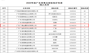 近日,广东商标协会重点商标保护委员会公布了《2020年度广东省重点商标保护名录纳入名单》,广东广青金属科技有限公司商标“…