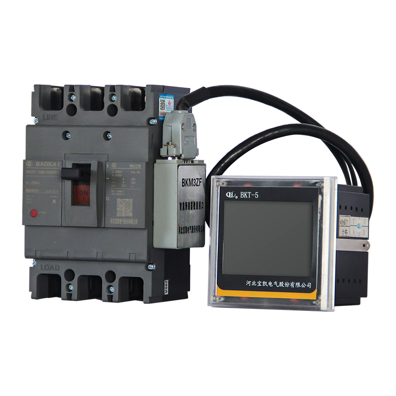 BKM3ZF系列分体式智能型塑壳式断路器,适用于交流50Hz,额定工作电压400V及以下,额定电流至800A的电路中,作线路的不频繁转换及电动机的不频繁起动之用。断路器具有过载长延时、短路短延时、短路瞬时、不对称接地、电流不平衡和过欠电压等多种保护功能,能有效地保护配电线路和电源设备不受损坏;亦可作为剩余电流保护之用,用来防止设备绝缘损坏、产生接地故障电流引起的火灾危险,亦可接收火灾报警信号,发出声光报警信号和控制信号。本系列断路器具有隔离功能。本系列断路器可垂直安装(即竖装),亦可水平安装(即横装)。本系列断路器执行标准:IEC 60947-1及GB/T 14048.1 《低压开关设备和控制设备 第1部分:总则》IEC 60947-2及GB/T 14048.2 《低压开关设备和控制设备 第2部分:断路器》 GB/T 14287.1 《电气火灾监控系统电气火灾监控设备》GB/T 14287.2 《电气火灾监控系统剩余电流式电气火灾监控探测器》Q/BK01 《BKY系列数字电测仪表》