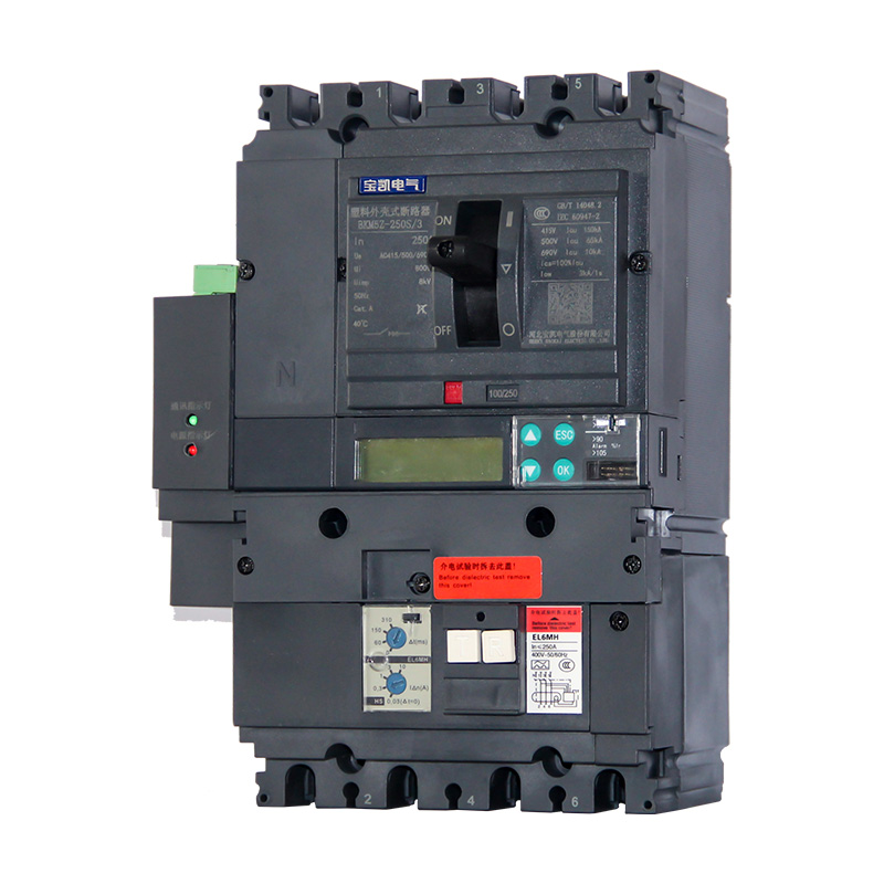 BKM5 系列塑料外壳式断路器适用于交流50Hz,额定绝缘电压1000V,额定工作电压至690V,额定电流12.5A至1600A的配电网络中,用来分配电能和保护线路及电源设备免受过载、短路、欠电压等故障的损坏。亦可作为电动机的不频繁起动及过载、短路、欠电压保护。加装Vigi剩余电流保护模块的断路器,只能上进线。MIC5.0E智能型断路器只能上进线。其他规格的断路器,既可上进线,也可下进线。本系列断路器具有隔离功能。本系列断路器可垂直安装(即竖装),亦可水平安装( 即横装)。本系列断路器执行标准:IEC 60947-1及GB/T 14048.1 《低压开关设备和控制设备 第1部分:总则》IEC 60947-2及GB/T 14048.2 《低压开关设备和控制设备 第2部分:断路器》IEC 60947-4及GB/T 14048.4 《低压开关设备和控制设备 第4-1部分:接触器和电动机起动器 机电式接触器和电动机起动器(含电动机保护器)》GB/T 22710《低压断路器用电子式控制器》